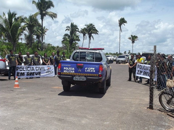 A presença do governador Marcelo Miranda (PMDB), nesta sexta-feira, 27, na região do Bico do Papagaio, serviu para que os policiais civis que estão em greve, protestassem. Em Praia Norte na solenidade de entrega da 1° fase das obras do Ecoporto, um grupo de policiais se reuniu na guarita de entrada do porto.