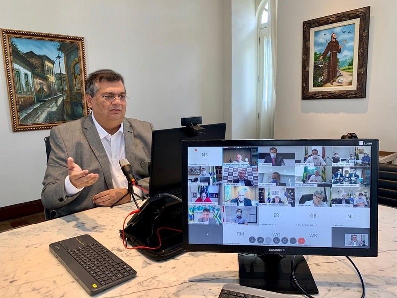 O governador Flávio Dino participou, na manhã desta quarta-feira (20) de reunião virtual do Fórum de Governadores, composto pelos governadores das 27 unidades federativas. Na pauta, as ações de combate ao coronavírus nos estados.