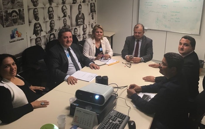 João Salame Neto, diretor do Departamento de Atenção Básica da Secretaria de Atenção à Saúde do Ministério da Saúde, recebeu nesta quarta-feira, 27, no seu gabinete em Brasília, os prefeitos de São Miguel, Sítio Novo e Itaguatins, Elisângela Alves (PR), Alexandre Farias (SD) e Ivoneide Barreto (PR), respectivamente.
