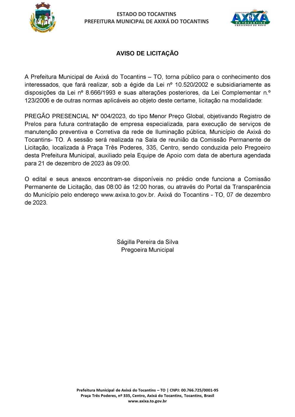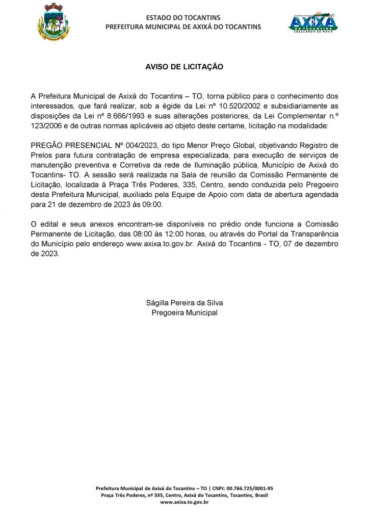 Publicidade Publicidade Geral PREFEITURA DE AXIXÁ DO TOCANTINS – AVISO DE LICITAÇÃO By Folha do Bico 7 de dezembro de 2023 0 138 Share WhatsAppPrintTelegramFacebookTwitterCopy URL Folha do Bico Noticias Relacionadas Recorte Automático de Vídeo para uma Edição Multiformato Sem Esforço 5 de dezembro de 2025 PREFEITURA DE MAURILÂNDIA DO TO – ATO AVISO DE CONCORRÊNCIA ELETRÔNICA Nº 06/2025 – REPUBLICAÇÃO 2 de dezembro de 2025 PREFEITURA DE MAURILÂNDIA DO TO – ATO AVISO DE CONCORRÊNCIA ELETRÔNICA Nº 05/2025 – REPUBLICAÇÃO 2 de dezembro de 2025 Share WhatsAppPrintTelegramFacebookTwitterCopy URL Previous articleChegada da Aura Minerals à Almas, no Tocantins, impulsiona o crescimento do municípioNext articleAUGUSTINÓPOLIS: Hospital Regional planeja aprimorar assistência a gestantes após visita técnica em Belo Horizonte - Advertisement - - Advertisement - Ultimas noticias Para Nunes Marques, afastamento de Wanderlei era excessivo e violava estabilidade institucional 5 de dezembro de 2025 STF derruba afastamento de Wanderlei Barbosa e governador reassume mandato 5 de dezembro de 2025 AUGUSTINÓPOLIS: Acender das Luzes celebra 4ª edição da Magia do Natal com espetáculo especial nesta sexta-feira 5 de dezembro de 2025 44 mil famílias sem casa. Enquanto isso, a política do Tocantins segue repetindo promessas que nunca saem do papel 5 de dezembro de 2025