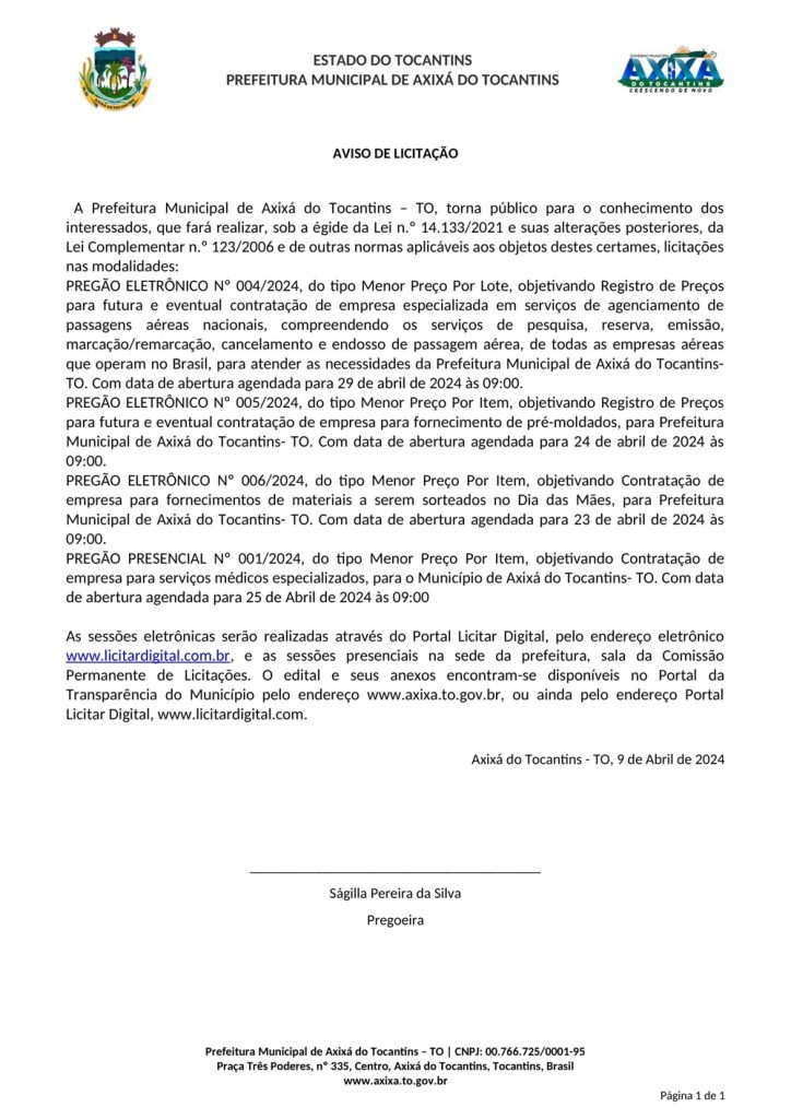Publicidade Publicidade Geral PREFEITURA DE AXIXÁ DO TOCANTINS – AVISO DE LICITAÇÃO By Folha do Bico 10 de abril de 2024 0 142 Share WhatsAppPrintTelegramFacebookTwitterCopy URL Folha do Bico Noticias Relacionadas Recorte Automático de Vídeo para uma Edição Multiformato Sem Esforço 5 de dezembro de 2025 PREFEITURA DE MAURILÂNDIA DO TO – ATO AVISO DE CONCORRÊNCIA ELETRÔNICA Nº 06/2025 – REPUBLICAÇÃO 2 de dezembro de 2025 PREFEITURA DE MAURILÂNDIA DO TO – ATO AVISO DE CONCORRÊNCIA ELETRÔNICA Nº 05/2025 – REPUBLICAÇÃO 2 de dezembro de 2025 Share WhatsAppPrintTelegramFacebookTwitterCopy URL Previous articleARAGUATINS: Vereador denuncia “cardápio fake” nas escolas municipaisNext articleCrypto Casinos e Casas de Apostas: Unir Inovação e Oportunidade - Advertisement - - Advertisement - Ultimas noticias STF derruba afastamento de Wanderlei Barbosa e governador reassume mandato 5 de dezembro de 2025 AUGUSTINÓPOLIS: Acender das Luzes celebra 4ª edição da Magia do Natal com espetáculo especial nesta sexta-feira 5 de dezembro de 2025 44 mil famílias sem casa. Enquanto isso, a política do Tocantins segue repetindo promessas que nunca saem do papel 5 de dezembro de 2025 AUGUSTINÓPOLIS: Comunidade celebra a chegada do período natalino com cores, música e emoção 5 de dezembro de 2025
