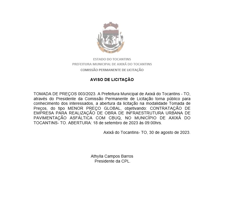 Publicidade Publicidade Geral PREFEITURA DE AXIXÁ DO TOCANTINS – AVISO DE LICITAÇÃO By Folha do Bico 31 de agosto de 2023 0 104 Share WhatsAppPrintTelegramFacebookTwitterCopy URL Folha do Bico Noticias Relacionadas Recorte Automático de Vídeo para uma Edição Multiformato Sem Esforço 5 de dezembro de 2025 PREFEITURA DE MAURILÂNDIA DO TO – ATO AVISO DE CONCORRÊNCIA ELETRÔNICA Nº 06/2025 – REPUBLICAÇÃO 2 de dezembro de 2025 PREFEITURA DE MAURILÂNDIA DO TO – ATO AVISO DE CONCORRÊNCIA ELETRÔNICA Nº 05/2025 – REPUBLICAÇÃO 2 de dezembro de 2025 Share WhatsAppPrintTelegramFacebookTwitterCopy URL Previous articleJanad Valcari solicita implementação do programa Biblioteca Itinerante no TocantinsNext articleARAGUATINS: Veja as vagas de emprego no SINE para esta quinta, 31 - Advertisement - - Advertisement - Ultimas noticias Para Nunes Marques, afastamento de Wanderlei era excessivo e violava estabilidade institucional 5 de dezembro de 2025 STF derruba afastamento de Wanderlei Barbosa e governador reassume mandato 5 de dezembro de 2025 “Decisão assertiva”: Ayres destaca respeito ao voto popular na volta de Wanderlei 5 de dezembro de 2025 44 mil famílias sem casa. Enquanto isso, a política do Tocantins segue repetindo promessas que nunca saem do papel 5 de dezembro de 2025