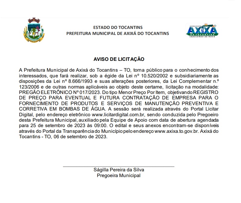 Publicidade Publicidade Geral PREFEITURA DE AXIXÁ DO TOCANTINS – AVISO DE LICITAÇÃO By Folha do Bico 11 de setembro de 2023 0 61 Share WhatsAppPrintTelegramFacebookTwitterCopy URL Folha do Bico Noticias Relacionadas Recorte Automático de Vídeo para uma Edição Multiformato Sem Esforço 5 de dezembro de 2025 PREFEITURA DE MAURILÂNDIA DO TO – ATO AVISO DE CONCORRÊNCIA ELETRÔNICA Nº 06/2025 – REPUBLICAÇÃO 2 de dezembro de 2025 PREFEITURA DE MAURILÂNDIA DO TO – ATO AVISO DE CONCORRÊNCIA ELETRÔNICA Nº 05/2025 – REPUBLICAÇÃO 2 de dezembro de 2025 Share WhatsAppPrintTelegramFacebookTwitterCopy URL Previous articleSÃO SEBASTIÃO: Professora Nenzinha é oficializada pré-candidata a prefeitaNext articleESPERANTINA: Amélio Cayres comemora aniversário com populares e aliados políticos - Advertisement - - Advertisement - Ultimas noticias Para Nunes Marques, afastamento de Wanderlei era excessivo e violava estabilidade institucional 5 de dezembro de 2025 STF derruba afastamento de Wanderlei Barbosa e governador reassume mandato 5 de dezembro de 2025 “Decisão assertiva”: Ayres destaca respeito ao voto popular na volta de Wanderlei 5 de dezembro de 2025 44 mil famílias sem casa. Enquanto isso, a política do Tocantins segue repetindo promessas que nunca saem do papel 5 de dezembro de 2025