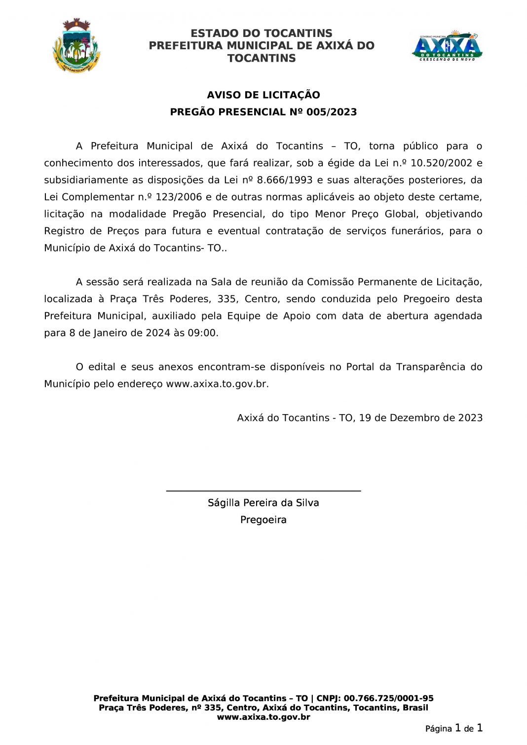 Publicidade Publicidade Geral PREFEITURA DE AXIXÁ DO TOCANTINS – AVISO DE LICITAÇÃO PREGÃO PRESENCIAL Nº 005/2023 By Folha do Bico 20 de dezembro de 2023 0 95 Share WhatsAppPrintTelegramFacebookTwitterCopy URL Folha do Bico Noticias Relacionadas Recorte Automático de Vídeo para uma Edição Multiformato Sem Esforço 5 de dezembro de 2025 PREFEITURA DE MAURILÂNDIA DO TO – ATO AVISO DE CONCORRÊNCIA ELETRÔNICA Nº 06/2025 – REPUBLICAÇÃO 2 de dezembro de 2025 PREFEITURA DE MAURILÂNDIA DO TO – ATO AVISO DE CONCORRÊNCIA ELETRÔNICA Nº 05/2025 – REPUBLICAÇÃO 2 de dezembro de 2025 Share WhatsAppPrintTelegramFacebookTwitterCopy URL Previous articlePREFEITURA DE AXIXÁ DO TOCANTINS – AVISO DE LICITAÇÃO PREGÃO ELETRÔNICO Nº 024/2023Next articleMARABÁ: Hospital Regional abre oportunidades de emprego. Inscrições podem ser realizadas até o dia 28 - Advertisement - - Advertisement - Ultimas noticias Para Nunes Marques, afastamento de Wanderlei era excessivo e violava estabilidade institucional 5 de dezembro de 2025 STF derruba afastamento de Wanderlei Barbosa e governador reassume mandato 5 de dezembro de 2025 AUGUSTINÓPOLIS: Acender das Luzes celebra 4ª edição da Magia do Natal com espetáculo especial nesta sexta-feira 5 de dezembro de 2025 44 mil famílias sem casa. Enquanto isso, a política do Tocantins segue repetindo promessas que nunca saem do papel 5 de dezembro de 2025