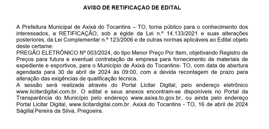 Publicidade Publicidade Geral PREFEITURA DE AXIXÁ DO TOCANTINS – AVISO DE RETIFICAÇÃO DE EDITAL By Folha do Bico 17 de abril de 2024 0 108 Share WhatsAppPrintTelegramFacebookTwitterCopy URL Folha do Bico Noticias Relacionadas Recorte Automático de Vídeo para uma Edição Multiformato Sem Esforço 5 de dezembro de 2025 PREFEITURA DE MAURILÂNDIA DO TO – ATO AVISO DE CONCORRÊNCIA ELETRÔNICA Nº 06/2025 – REPUBLICAÇÃO 2 de dezembro de 2025 PREFEITURA DE MAURILÂNDIA DO TO – ATO AVISO DE CONCORRÊNCIA ELETRÔNICA Nº 05/2025 – REPUBLICAÇÃO 2 de dezembro de 2025 Share WhatsAppPrintTelegramFacebookTwitterCopy URL Previous articleFAET destaca expectativas recordes para a Agrotins 2024: presidente Paulo Carneiro ressalta importância do evento agropecuárioNext articleARAGUATINS: Comunicador denuncia tentativa de intimidação do prefeito Aquiles da Areia - Advertisement - - Advertisement - Ultimas noticias STF derruba afastamento de Wanderlei Barbosa e governador reassume mandato 5 de dezembro de 2025 AUGUSTINÓPOLIS: Acender das Luzes celebra 4ª edição da Magia do Natal com espetáculo especial nesta sexta-feira 5 de dezembro de 2025 44 mil famílias sem casa. Enquanto isso, a política do Tocantins segue repetindo promessas que nunca saem do papel 5 de dezembro de 2025 AUGUSTINÓPOLIS: Comunidade celebra a chegada do período natalino com cores, música e emoção 5 de dezembro de 2025