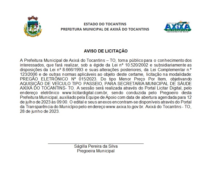 Publicidade Publicidade Geral PREFEITURA DE AXIXÁ DO TOCANTINS – AVISO DE LICITAÇÃO By Folha do Bico 29 de junho de 2023 0 99 Share WhatsAppPrintTelegramFacebookTwitterCopy URL Folha do Bico Noticias Relacionadas Recorte Automático de Vídeo para uma Edição Multiformato Sem Esforço 5 de dezembro de 2025 PREFEITURA DE MAURILÂNDIA DO TO – ATO AVISO DE CONCORRÊNCIA ELETRÔNICA Nº 06/2025 – REPUBLICAÇÃO 2 de dezembro de 2025 PREFEITURA DE MAURILÂNDIA DO TO – ATO AVISO DE CONCORRÊNCIA ELETRÔNICA Nº 05/2025 – REPUBLICAÇÃO 2 de dezembro de 2025 Share WhatsAppPrintTelegramFacebookTwitterCopy URL Previous articleCONVOCAÇÃO DE COMPARECIMENTONext articleCANAÃ DOS CARAJÁS: Município aumenta população em quase 190% e é o que mais cresceu no Brasil desde 2010 - Advertisement - - Advertisement - Ultimas noticias Para Nunes Marques, afastamento de Wanderlei era excessivo e violava estabilidade institucional 5 de dezembro de 2025 STF derruba afastamento de Wanderlei Barbosa e governador reassume mandato 5 de dezembro de 2025 “Decisão assertiva”: Ayres destaca respeito ao voto popular na volta de Wanderlei 5 de dezembro de 2025 44 mil famílias sem casa. Enquanto isso, a política do Tocantins segue repetindo promessas que nunca saem do papel 5 de dezembro de 2025