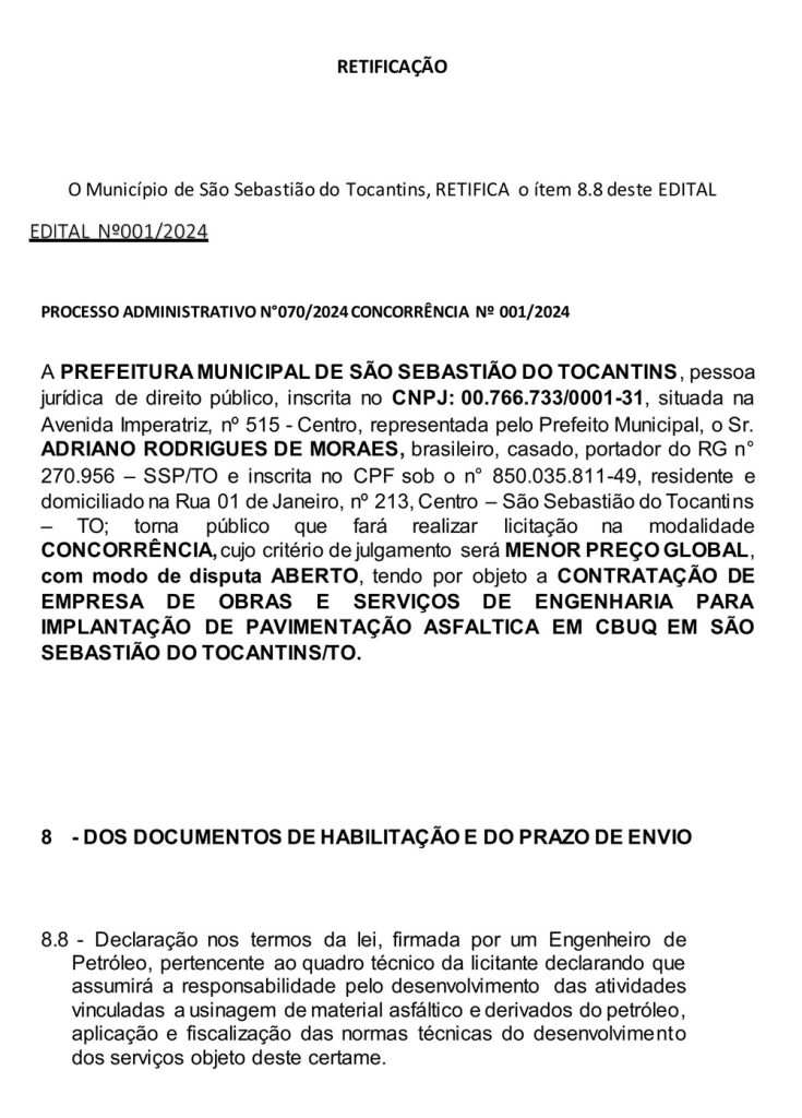 Publicidade Publicidade Geral PREFEITURA DE SÃO SEBASTIÃO DO TO – EDITAL DE RETIFICAÇÃO – PROCESSO ADMINISTRATIVO N°070/2024 CONCORRÊNCIA Nº 001/2024 By Folha do Bico 6 de janeiro de 2025 0 36 Share WhatsAppPrintTelegramFacebookTwitterCopy URL Folha do Bico Noticias Relacionadas PREFEITURA DE MAURILÂNDIA DO TO – ATO AVISO DE CONCORRÊNCIA ELETRÔNICA Nº 06/2025 – REPUBLICAÇÃO 2 de dezembro de 2025 PREFEITURA DE MAURILÂNDIA DO TO – ATO AVISO DE CONCORRÊNCIA ELETRÔNICA Nº 05/2025 – REPUBLICAÇÃO 2 de dezembro de 2025 PREFEITURA DE MAURILÂNDIA DO TO – ATO AVISO DE CONCORRÊNCIA ELETRÔNICA Nº 04/2025 – REPUBLICAÇÃO 2 de dezembro de 2025 Share WhatsAppPrintTelegramFacebookTwitterCopy URL Previous articleTocantins terá o maior crescimento do Norte e Nordeste e o quarto maior do Brasil em 2025Next articleRestos da ponte JK serão implodidos - Advertisement - - Advertisement - Ultimas noticias AUGUSTINÓPOLIS: Vigilante de abrigo é preso suspeito de abusar duas crianças 4 de dezembro de 2025 SÃO MIGUEL: Lixão é fechado e passa a ter acesso controlado sob novas diretrizes ambientais 4 de dezembro de 2025 ARAGUATINS: Insatisfeitos, Abmael, Chico Moura e Rafael Oliveira passam a votar com a oposição e complicam gestão Aquiles 4 de dezembro de 2025 ARAGUATINS: Com voto decisivo e comando da oposição, Airton se torna principal contraponto à gestão Aquiles 4 de dezembro de 2025