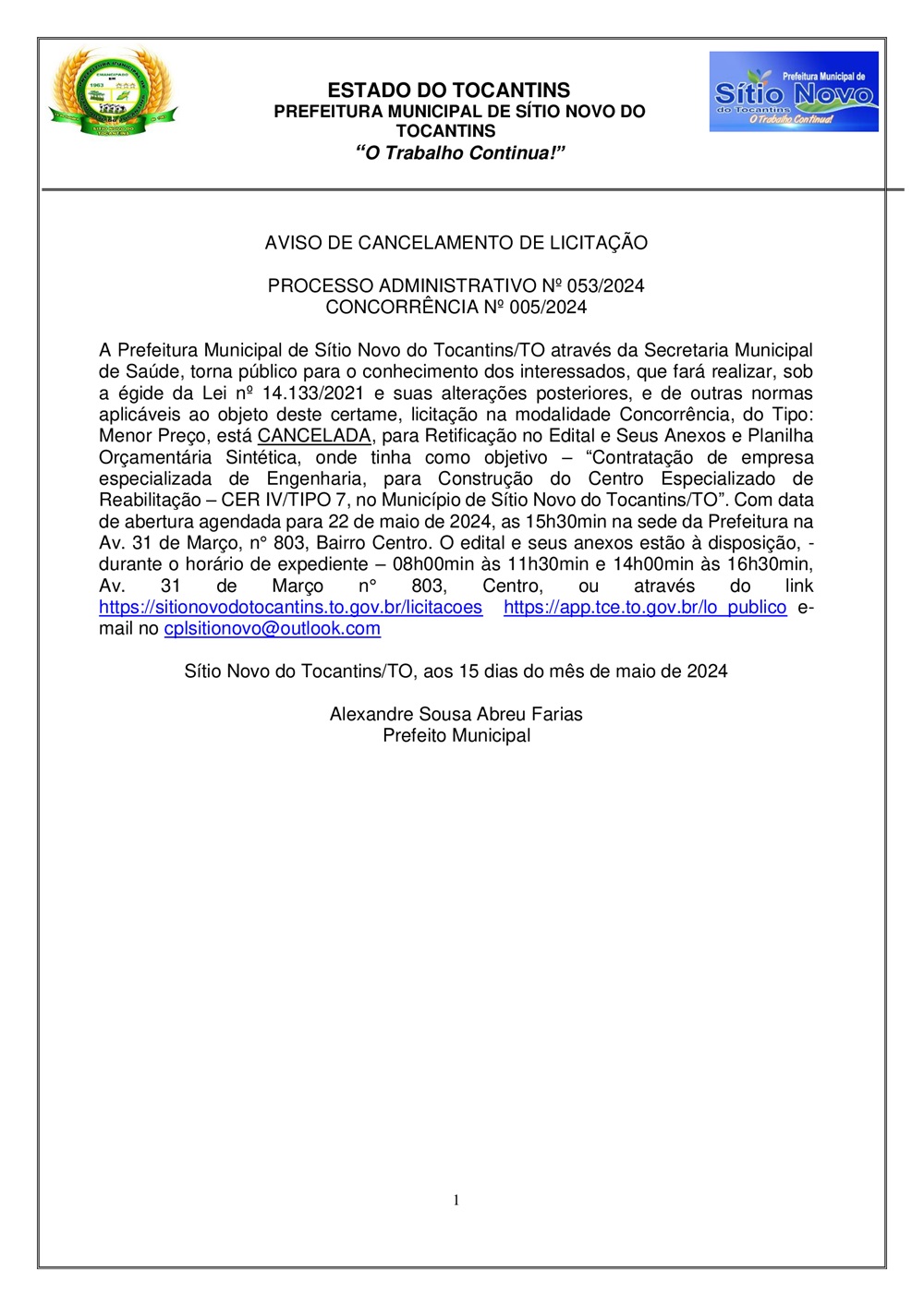 Publicidade Publicidade Geral PREFEITURA DE SÍTIO NOVO DO TOCANTINS – AVISO DE CANCELAMENTO DE LICITAÇÃO By Folha do Bico 16 de maio de 2024 0 154 Share WhatsAppPrintTelegramFacebookTwitterCopy URL Folha do Bico Noticias Relacionadas Recorte Automático de Vídeo para uma Edição Multiformato Sem Esforço 5 de dezembro de 2025 PREFEITURA DE MAURILÂNDIA DO TO – ATO AVISO DE CONCORRÊNCIA ELETRÔNICA Nº 06/2025 – REPUBLICAÇÃO 2 de dezembro de 2025 PREFEITURA DE MAURILÂNDIA DO TO – ATO AVISO DE CONCORRÊNCIA ELETRÔNICA Nº 05/2025 – REPUBLICAÇÃO 2 de dezembro de 2025 Share WhatsAppPrintTelegramFacebookTwitterCopy URL Previous articleAUGUSTINÓPOLIS: 22 celulares são recuperados e ladrões são presosNext articleARAGUATINS: Veja as vagas de emprego no SINE para esta quinta, 16 - Advertisement - - Advertisement - Ultimas noticias STF derruba afastamento de Wanderlei Barbosa e governador reassume mandato 5 de dezembro de 2025 AUGUSTINÓPOLIS: Acender das Luzes celebra 4ª edição da Magia do Natal com espetáculo especial nesta sexta-feira 5 de dezembro de 2025 44 mil famílias sem casa. Enquanto isso, a política do Tocantins segue repetindo promessas que nunca saem do papel 5 de dezembro de 2025 AUGUSTINÓPOLIS: Comunidade celebra a chegada do período natalino com cores, música e emoção 5 de dezembro de 2025
