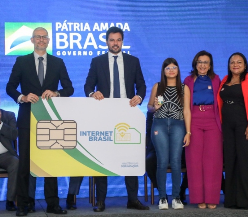 INTERNET BRASIL — Outro anúncio importante foi o início da distribuição dos chips do programa Internet Brasil, que, nesta primeira fase irá atender 6.250 alunos da rede pública que fazem parte do Cadastro Único para Programas Sociais. Estudantes de 15 escolas de Mossoró (RN), Caicó (RN), Caruaru (PE), Petrolina (PE), Juazeiro (BA) e Campina Grande (PB) foram os primeiros beneficiados. Ana Luiza Luz de Oliveira, da oitava série da Escola Municipal Manoel Assis, de Mossoró, no Rio Grande do Norte, recebeu um chip das mãos do ministro.