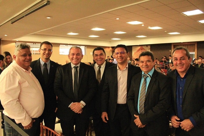 O presidente da Federação das Associações de Municípios do Estado do Pará (Famep) e prefeito de Santarém, Nélio Aguiar, participou da solenidade de posse dos novos dirigentes que estarão à frente do Tribunal de Contas dos Municípios do Pará (TCM-PA) para o biênio 2019-2020, nesta terça-feira (15). O conselheiro Francisco Sérgio de Souza Leão foi empossado como novo presidente do TCM-PA, recebendo o colar presidencial do conselheiro Daniel Lavareda, que presidiu a Corte de Contas nos anos de 2017 e 2018. Estiveram presentes membros, servidores, deputados estaduais, deputados federais e prefeitos.