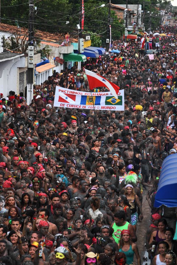 Aliando diversão e consciência ambiental, o bloco Pretinhos do Mangue, um dos mais tradicionais do Carnaval do Pará, arrastou uma multidão de foliões neste domingo (19) em Curuçá, nordeste do Estado. Os brincantes pintaram os corpos com o barro preto do manguezal para pular e cantar pelas ruas da cidade. Cerca de 15 mil pessoas participaram da folia.