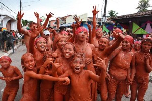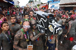 O grupo de Leonardo Rocha, 20 anos, Mayara Neves, 15, e Gilberto da Silva, 27, foi um dos que se despiram das roupas limpas e entraram no manguezal para se pintar com o tijuco, como é conhecido o barro do mangue. Pela terceira vez, eles repetem o rito, para desfilar com o bloco pela cidade. “Depois que você se lambuza na primeira vez, não tem como não fazer novamente”, disse Leonardo.