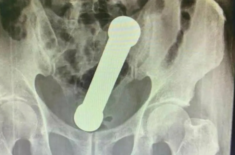 O rapaz foi submetido a uma bateria de exames, incluindo um raio-X, que mostrou a presença do haltere de 2 kg. O objeto de cerca de 20 centímetros estava entre o reto e o intestino grosso do paciente.