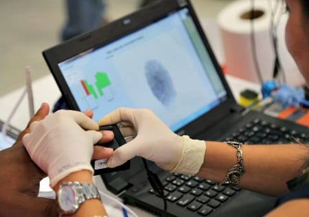 Técnicos do Tribunal Regional Eleitoral (TRE-PA) realizam o trabalho de registro das impressões digitais.