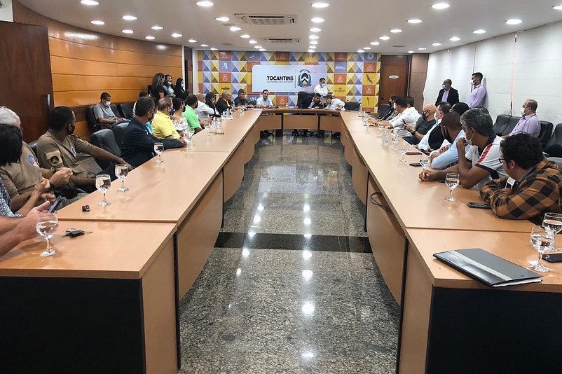 O Governo do Tocantins recebeu na tarde desta quarta-feira, 2, na sala de reuniões do Palácio Araguaia, representantes de 28 federações esportivas do Estado. O objetivo foi discutir a implantação do centro administrativo das respectivas federações em Palmas. A reunião foi presidida pelo secretário de Esportes, Flávio Cabanhas, e contou com a participação do secretário de Estado da Governadoria, César Halum, do secretário-chefe da Casa Civil, Deocleciano Gomes Filho, do presidente da Tocantins Parcerias, Aleandro Lacerda, e do deputado federal Vicentinho Júnior.