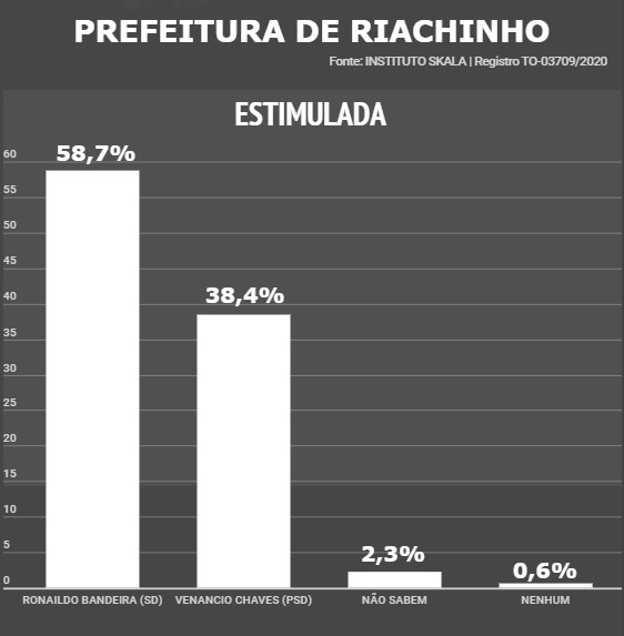 Em Riachinho, no Bico do Papagaio, Ronaildo Bandeira (SD), tem a preferencia do eleitorado na reta final da disputa pela Prefeitura Municipal, segundo pesquisa divulgada pelo Instituto Skala.