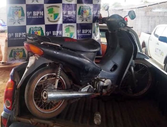 Equipe de policiais militares do 9º Batalhão de Polícia Militar (9º BPM), apreenderam na tarde dessa quarta-feira, 28, no Porto da Balsa de Sampaio, uma motocicleta Honda C100 Biz, placa daquele município com registro de furto. A denúncia partiu do proprietário do veículo, um senhor de 53 anos.