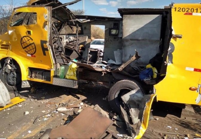 O crime ocorreu por volta das 9h30. Os bandidos usaram dinamite e o veículo ficou completamente destruído.