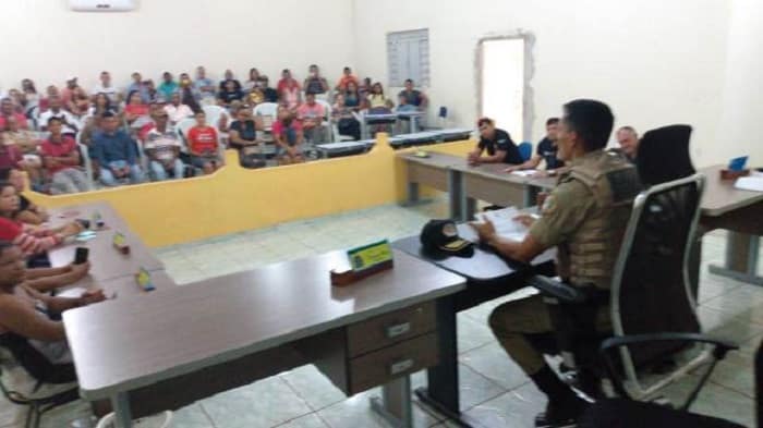 A reunião ocorreu no auditório da Câmara Municipal de São Bento sob a direção do comandante do 9º Batalhão, tenente-coronel Weslley Dias Costa.