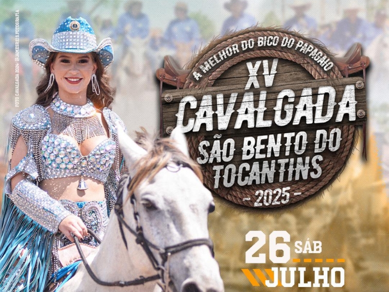 A Prefeitura de São Bento, no Bico do Papagaio, confirmou para o dia 26 de julho de 2025 a realização da XV Cavalgada do município. O evento, que já se tornou uma tradição na cidade e em toda a região, promete reunir milhares de pessoas, entre cavaleiros, amazonas, admiradores da cultura sertaneja e visitantes de diversos municípios vizinhos.