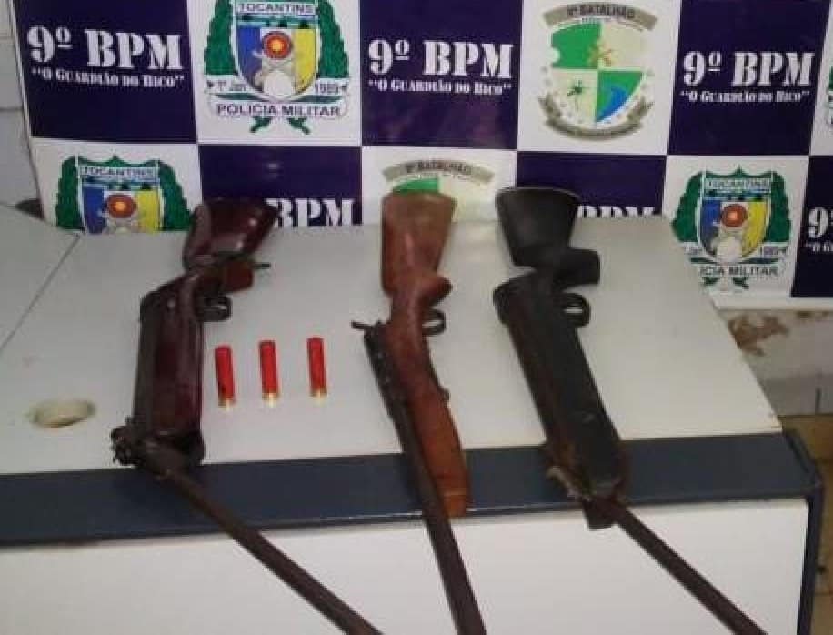 O autor não foi localizado na residência, no entanto sua mãe que estava em casa, permitiu o acesso da equipe policial que conseguiu localizar três armas de fogo de uso permitido, sendo: duas espingardas cal. 22, uma espingarda cal. 28 e várias munições intactas, todo o material apreendido foi apresentado na Delegacia de Polícia Civil de Araguatins.