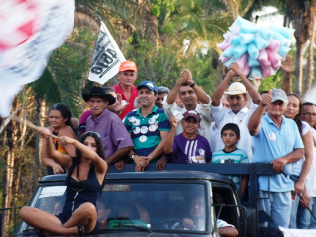 Participaram do comício dezenas decandidatos a vereadores, os deputados estaduais José Geraldo (PTB) e Manoel Queiroz, o prefeito de Nazaré Clayton Paulo, o ex-prefeito Ronaldo Parente e dezenas de lideranças do município. (ASCOM/Coligação São BentoDeus Forte
