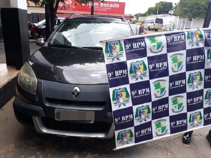 Os acusados foram abordados pela PM quando conduziam o veiculo Sandero, com placa de Goiânia-GO. A placa estava adulterada e com registro de furto/roubo.