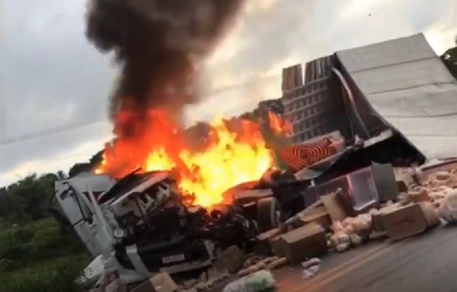 O caminhão baú entrou em combustão e um dos passageiros teve o corpo carbonizado e morreu no local. O motorista do caminhão sofreu ferimentos leves e foi conduzido pelo SAMU a uma unidade de saúde da região.