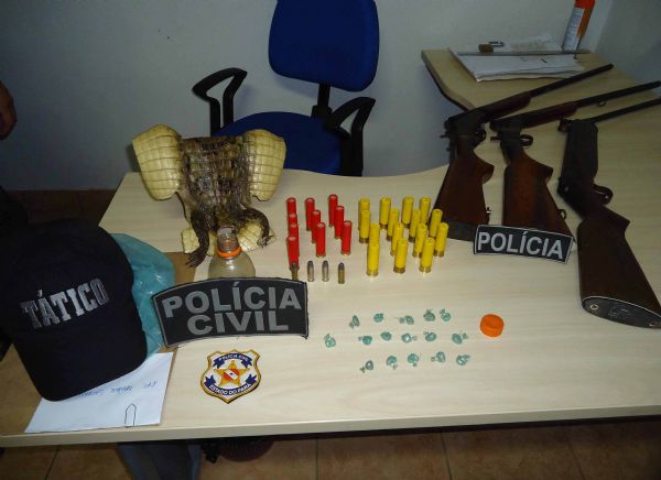 A Polícia Civil divulgou, nesta segunda-feira, 1º, o resultado da operação “Araguaia”, realizada no sábado, 29, quando policiais civis da Superintendência do Sudeste do Pará, em conjunto com policiais militares, do 4º Batalhão da PM, cumpriram 14 mandados de busca e apreensão em localidades do município de São João do Araguaia, próximo à Araguatins. Durante as buscas, foram encontradas três armas de fogo longas, munições de diversos calibres, 16 petecas de “crack” e uma motocicleta sem origem comprovada. Foi preso em flagrante Wanderson Balbino da Silva, 19 anos, por posse ilegal de arma de fogo.