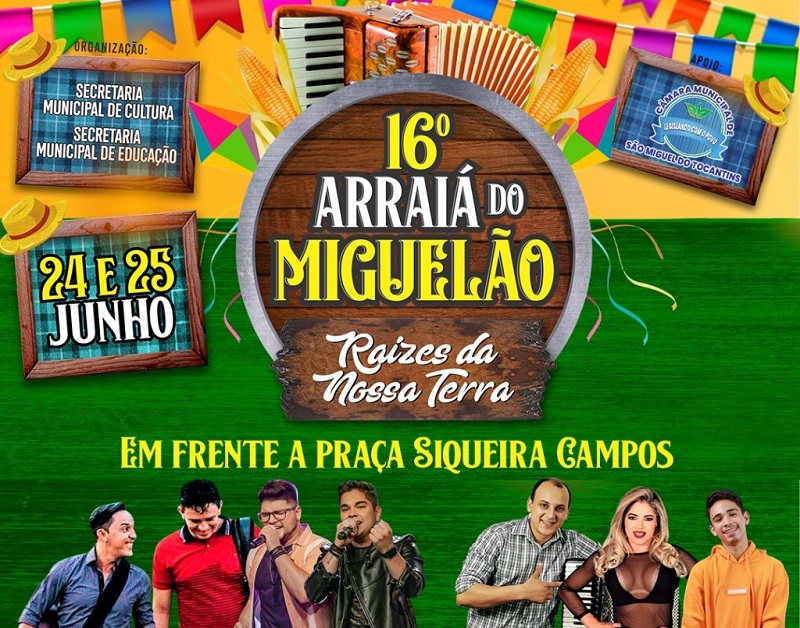 A prefeitura de São Miguel, município no Bico do Papagaio, realizará nos dias 24 e 25 de junho o 16ª Arraiá do Miguelão com o tema “Raízes da Nossa Terra”. A festa acontecerá em frente à praça Siqueira Campos, no centro do município a partir das 19h.