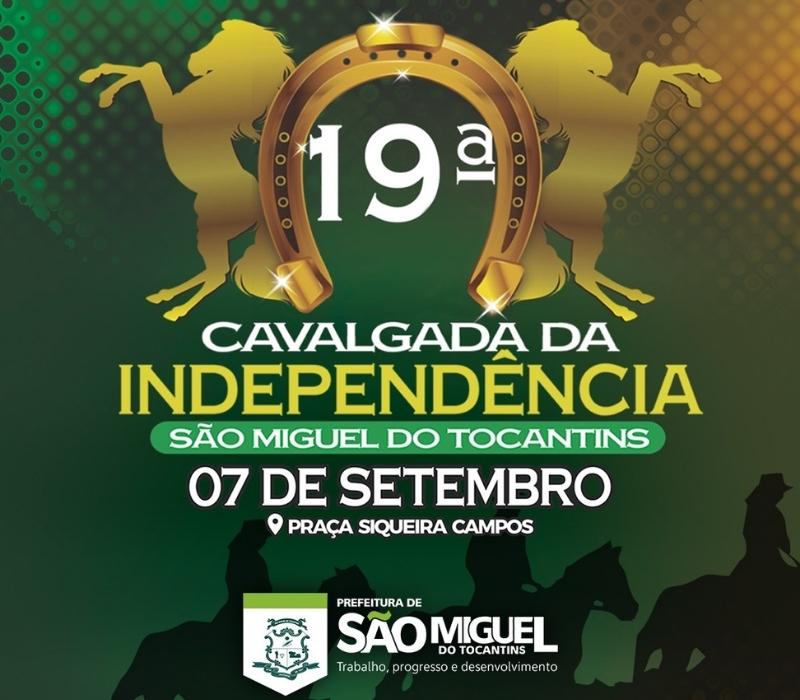 A Prefeitura Municipal de São Miguel, no Bico do Papagaio, realizará a 19º Cavalgada da Independência no dia 07 de setembro. As inscrições para as comitivas e carroças já estão abertas e podem ser feitas no Centro Cultural, na rua Afonso Pena, s/n, centro, das 7h30 às 13h.