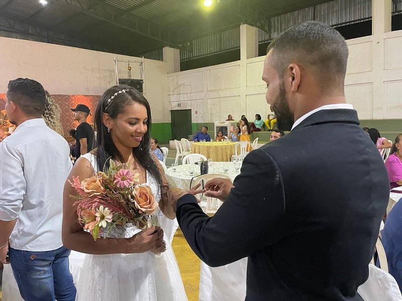 Na semana passada, a Prefeitura Municipal de São Miguel, no Bico do Papagaio, realizou o Casamento Comunitário. A cerimônia para 54 casais foi realizada no Ginásio Poliesportivo Hawlison Gutierres de Sousa Martins e contou com um jantar especial para os recém-casados.