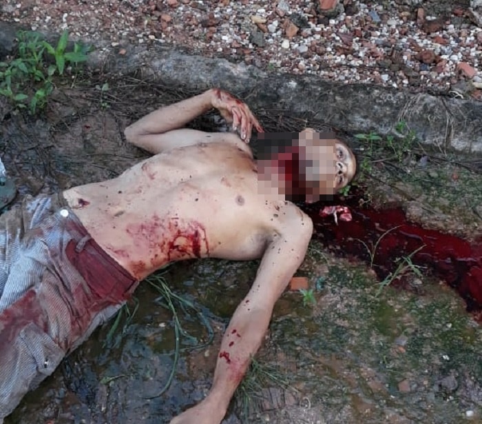 A Polícia Militar (PM) foi informada de que um corpo havia sido encontrado sobre uma calçada. No local a guarnição constatou que a vítima já estava sem vida e possuía um grande corte na garganta provocado possivelmente por objeto cortante.