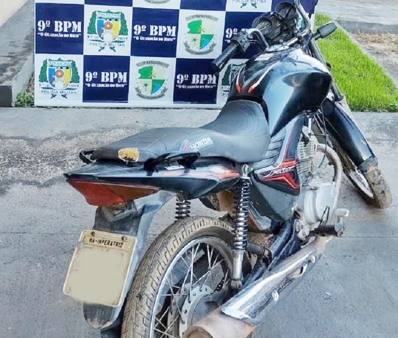 A PM foi acionada pela Polícia Civil dando conta de que a vítima, homem de 38 anos, havia procurado a Delegacia declarando que havia localizado sua motocicleta Honda 150 Fan, placa de Imperatriz-MA, roubado dia anterior, domingo, 8, em São Miguel.