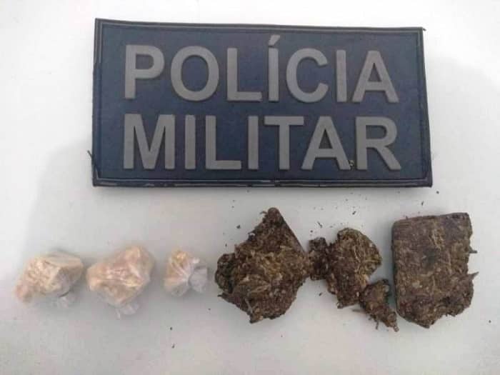 Uma policial militar feminina realizou uma busca na suspeita e encontrou cerca de 200 gramas da substância análoga a maconha prensada e três pedras de substâncias análoga a crack, pesando em torno de 50 gramas.