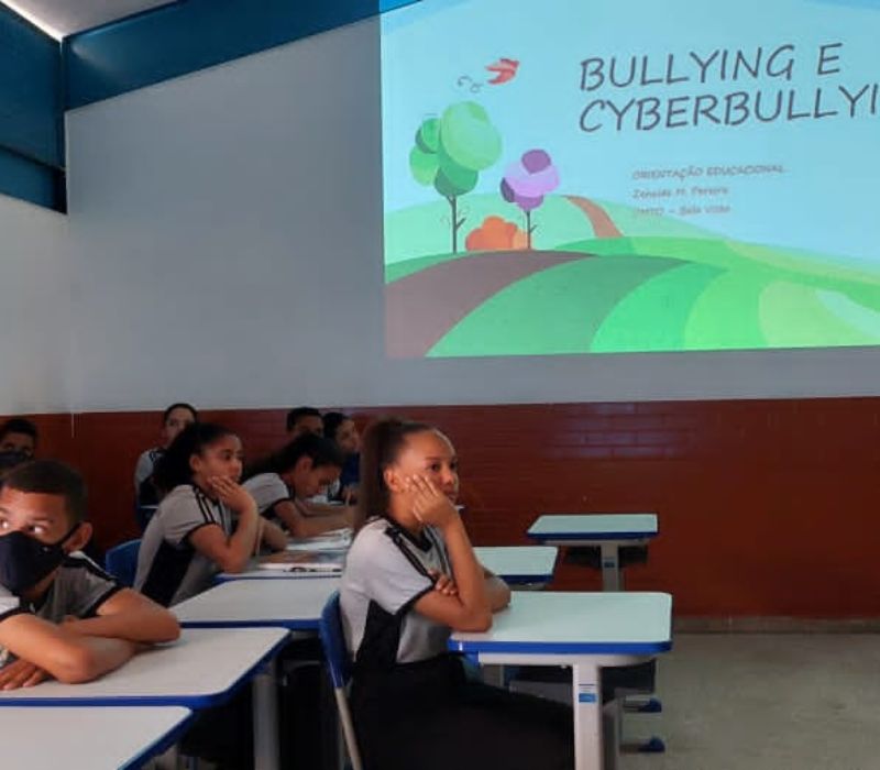Diante da pergunta: Quem já foi vítima de bullying? Muitos estudantes levantaram a mão confirmando que já sofreram algum tipo de agressão. Ela também chama a atenção dos adolescentes para o ciberbullying que ocorre por meio do uso das redes sociais, hoje muito comum entre os jovens e envolve ações como exposição de fotografias ou montagens constrangedoras, divulgação de fotografias íntimas, críticas à aparência física, à opinião e ao