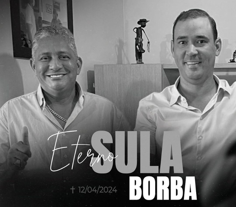 Com profunda tristeza informamos o falecimento do senhor Sula Borba pai da minha esposa, Gillaynny Borba de Oliveira. É com imensa dor que nos despedimos de um homem íntegro, uma pessoa querida por todos, que sempre irradiava alegria com seu sorriso contagiante. Neste momento de profunda tristeza e saudade, peço a todos que unam suas preces em solidariedade à minha esposa, sua mãe a vereadora Irene Borba e a toda a família Borba. O Senhor Sula Borba partiu deixando um legado de amor e bondade que será lembrado para sempre. Que ele descanse em paz e que sua memória seja um conforto para todos nós.