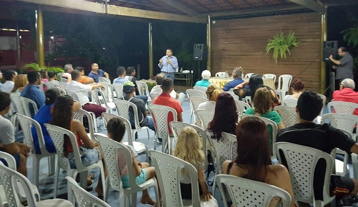 A declaração foi dada durante encontro com moradores do povoado Bela Vista, na noite de sábado, dia 30, em São Miguel do Tocantins (642 km de Palmas), no extremo oeste do Tocantins na divisa com Maranhão. A reunião finalizou a agenda de Márlon Reis no Bico Papagaio, onde ministrou palestras e se reuniu com a comunidade de outras cidades – ele esteve em Araguatins, Augustinópolis, Praia Norte, Sampaio. A agenda começou na quarta-feira passada, dia 27, e teve ainda Pedro Afonso, Guaraí e Colinas do Tocantins.