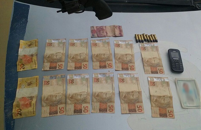 Durante buscas no interior da casa do artesão a PM encontrou um revólver Taurus Special, com capacidade para seis tiros e oito munições intactas. Foi encontrado também uma quantia de R$ 545 reais em dinheiro.