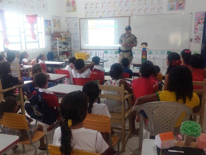 A Polícia Militar (PM), esteve na manhã desta última sexta-feira (28), realizando uma palestra com o tema: “Trânsito Seguro”, para mais de 20 alunos da educação infantil do 5º ano do ensino fundamental da escola municipal Praia Alta no povoado de Praia Alta em São Miguel do Tocantins.