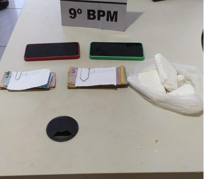 Durante a abordagem, a PM percebeu quando a mulher de 39 anos jogou no Rio um celular e uma sacola plástica cujo interior foi encontrado aproximadamente 500 gramas de substância análoga a pasta base de cocaína. Já o menor de 16 anos também jogou no Rio um aparelho celular que não foi localizado pela PM. O homem de 29 anos conseguiu evadir-se do local, tomando rumo ignorado.