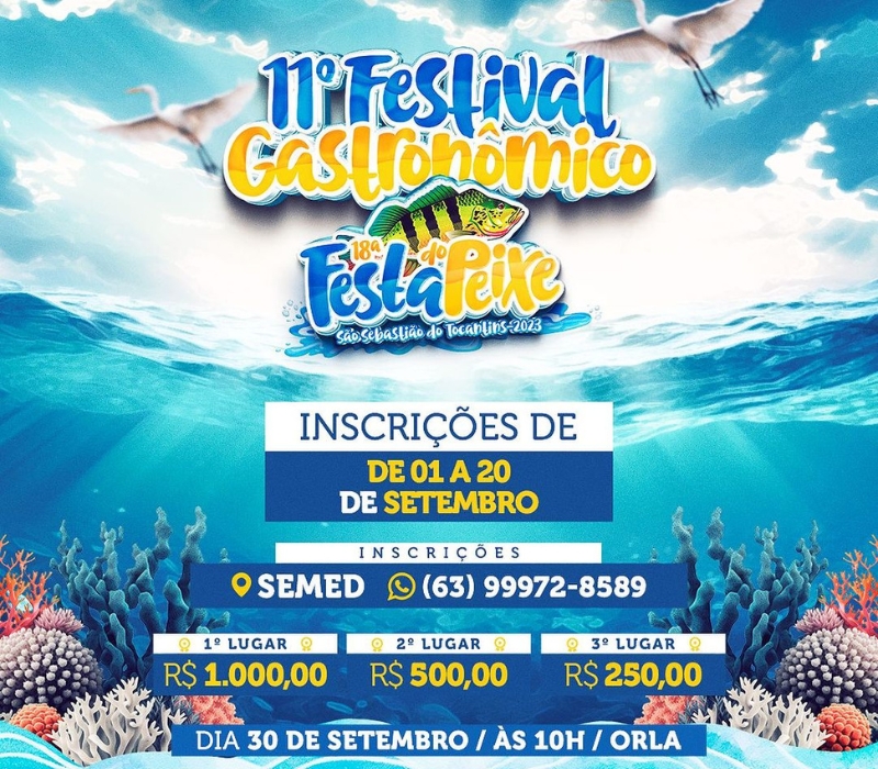 As inscrições para o 11º Festival Gastronômico do 18º Festival do Peixe, em São Sebastião, no Bico do Papagaio, estão abertas até quarta-feira, dia. O evento acontece no dia 30 de setembro, e faz parte da programação do Festival do Peixe.