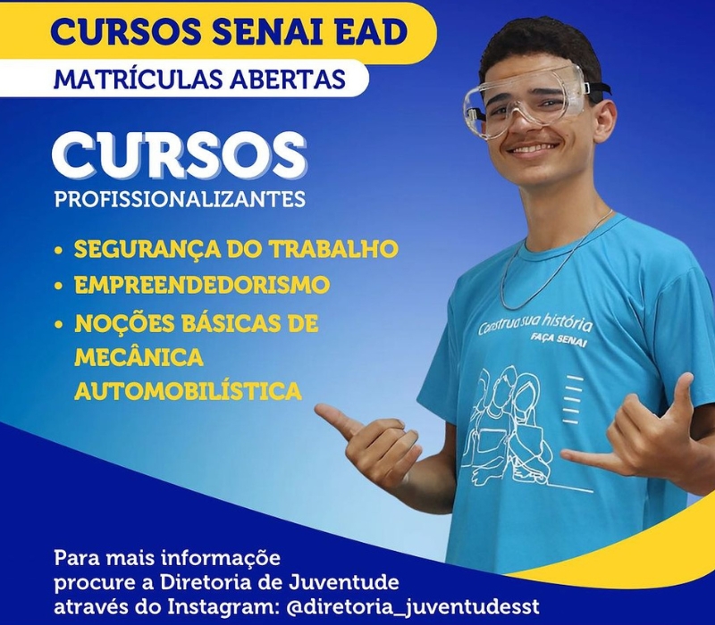 A Prefeitura Municipal de São Sebastião, no Bico do Papagaio, está com matrículas abertas para cursos profissionalizantes EAD do SENAI. Os cursos são: