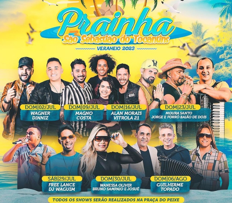 Todos os shows da temporada, serão realizados na Praça do Peixe.
