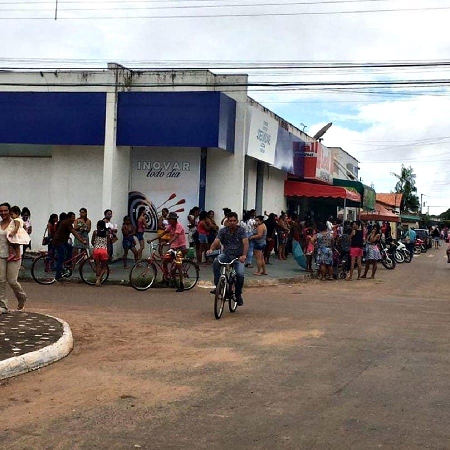 Fila na lotérica em Araguatins, nesta segunda, 26, para saques do auxílio emergencial