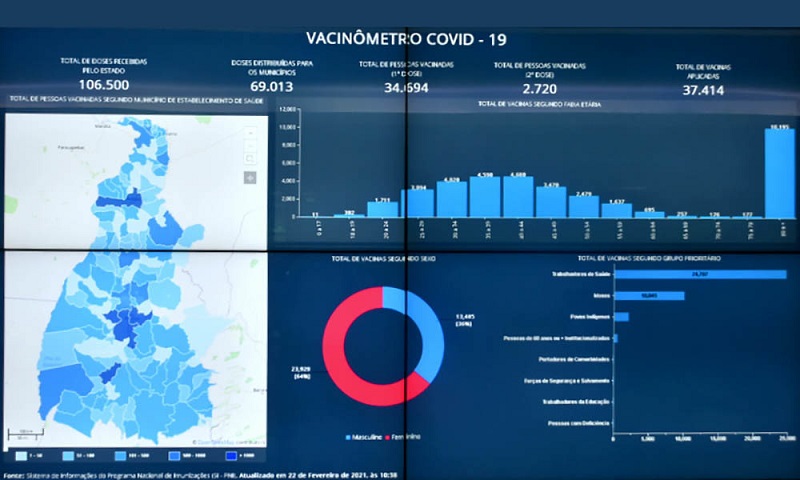 A população tocantinense poderá acompanhar, a partir esta segunda-feira, 22, os dados das vacinas contra Covid-19 recebidas e aplicadas por cada município tocantinense. O Vacinômetro, disponibilizado pela Secretaria de Estado da Saúde (SES), detalha quantidade de doses recebidas, público-alvo vacinado, idade, profissão, sexo e ranking dos municípios por dose aplicada.