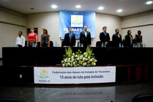 Tomaram posse na sexta-feira, 13, em Palmas, o presidente e os membros da diretoria executiva, procurador jurídico, conselhos de administração e fiscal e autodefensores da Federação das Apaes do Estado do Tocantins (Feapaes-TO). Os novos empossados exercem o mandato de 2012 a 2014. O secretário estadual da Educação, Danilo de Melo Souza, prestigiou o evento e anunciou novidades para as Apaes do Tocantins.