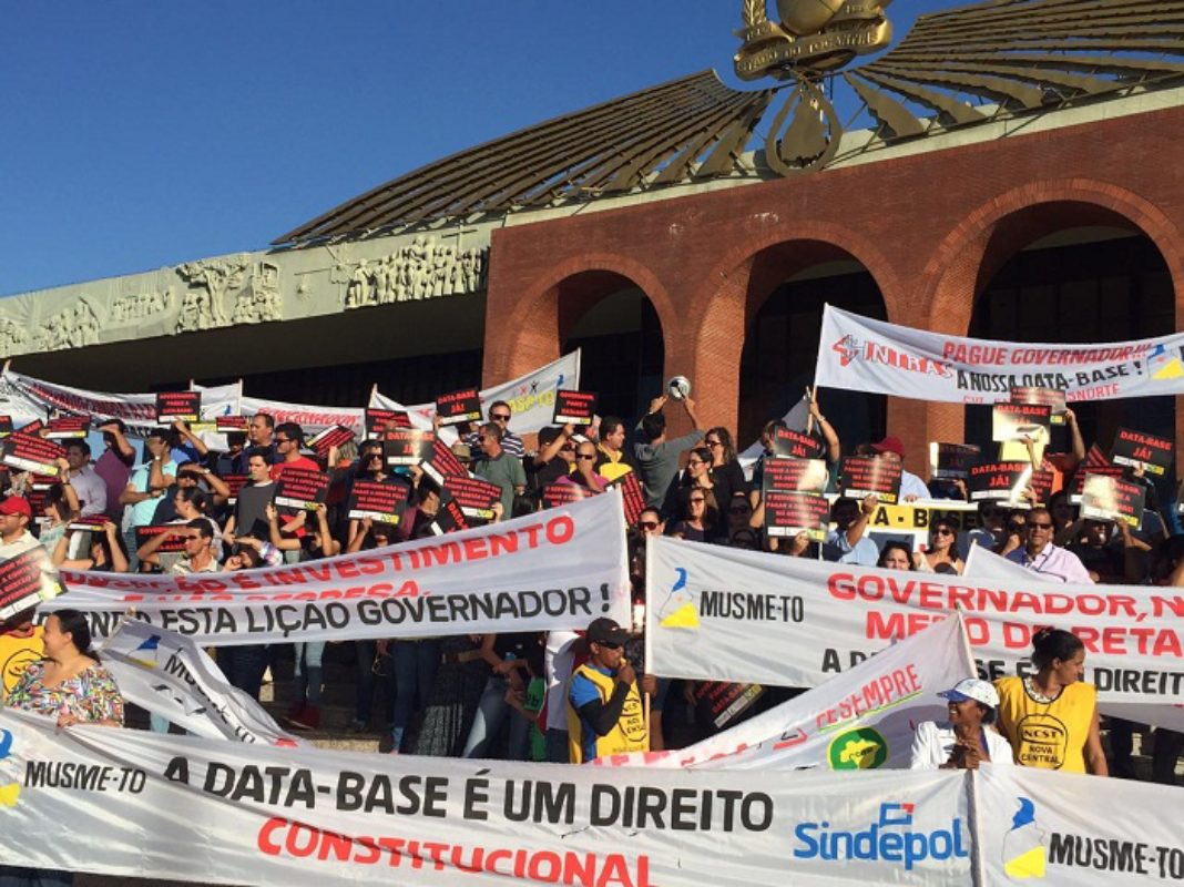 Revolta e decepção são os sentimentos demonstrados pelos servidores públicos estaduais durante uma concentração em frente ao Palácio Araguaia na tarde de ontem com o objetivo de pressionar para que o governo conceda o retroativo da data-base de 2015 e o índice deste ano. Durante entrevista, após a entrega de viaturas para o Corpo de Bombeiros Militar (CBM) – confira matéria na página 6 -, também na tarde de ontem, o governador Marcelo Miranda foi categórico ao dizer que as negociações já estão sendo feitas pelo Grupo Gestor e destacou que o governo tem investido em outros setores como saúde, educação e infraestrutura. Como benefício aos servidores, Miranda anunciou que o pagamento deste mês vai ser feito na sexta-feira, dia 8.