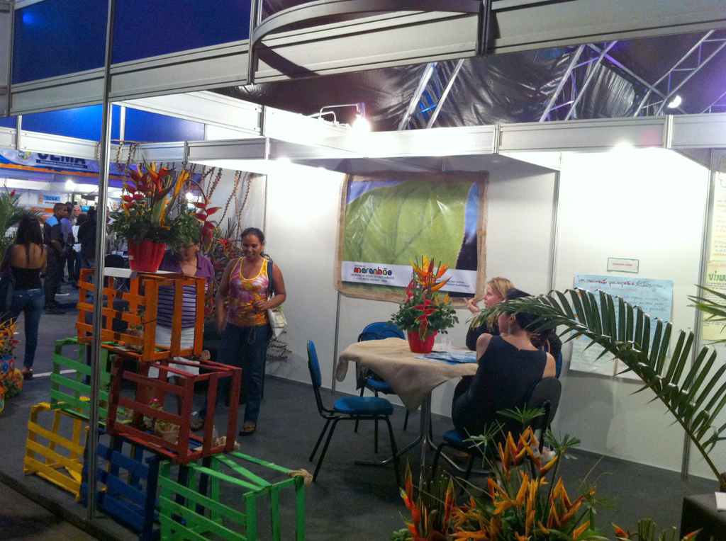A ornamentação do estande teve um charme a mais: foi toda natural. Foram usados galhos de buriti e arranjos feitos com helicônias, a partir de uma parceria entre Sema e Quixaba Plantas. As helicônias são plantas pertencentes à família Heliconiaceae, gênero Heliconia. Possuem origem neotropical e aparecem, naturalmente, em clareiras, bordas de florestas e matas ciliares, na América Central e América do Sul. No Maranhão, principalmente, em São Luís, essa espécie de planta já é cultivada para ser usada como flor de corte. O que evita que ela seja colhida do ambiente nativo degradando a natureza.