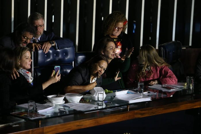 Fora do plenário, Eunício declarou que a sessão só seria retomada quando “a ditadura deixar”. As senadoras continuaram ocupando a mesa diretora até o final da tarde. Elas conversaram, gravaram vídeos para as redes sociais e até almoçaram.